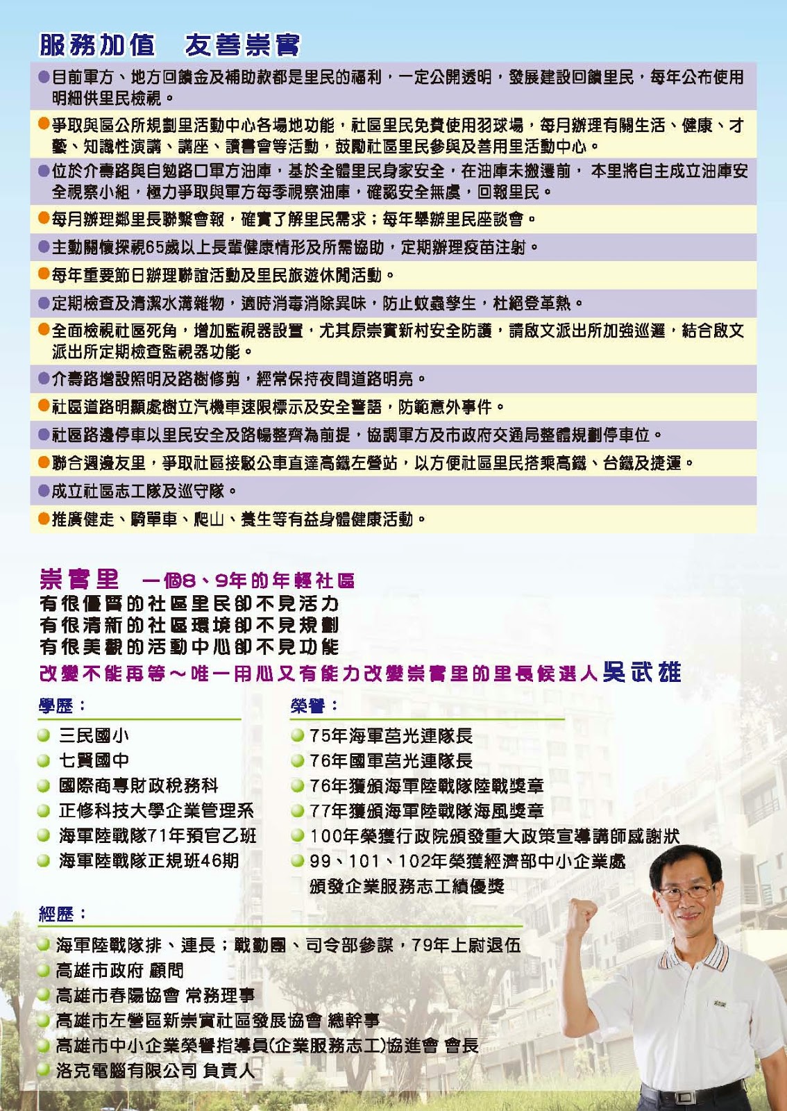 左營 崇實里長候選人 吳武雄 敬邀 競選服務處成立茶會